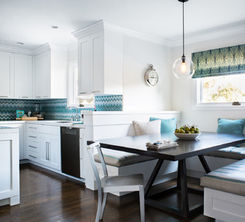 This fabulous kitchen! Nice white crisp cabinetry highlighting an amazing chevron tile backsplash, now that took guts but was well worth it in my opinion!!